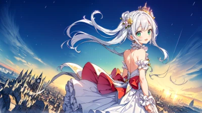 ,(ultra best quality),(spectacle hdr wdr iso cgi effect),(vivid silk screen),(magnificent Sophistication Photoshop quality Specialization:1.2),(young little lady face girl:1.2),(little lady),(silver side up hair),(vivid emerald eyes),(Milky skin),(medieval clothing)(frill skirt),(akashic records:1.6),(history:1.2),(era),(feeling:1.3),(cityscape:1.3),(ancient),(view),(panorama),(foamy dream:1.2),(rich:1.3),<lora:add_detail:0.7> <lora:sharpen-soften:0.2>