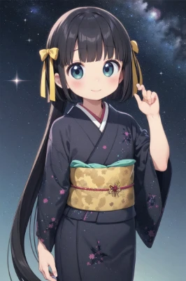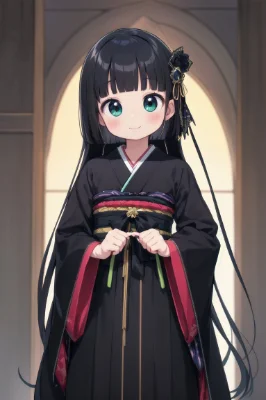 (((very longest hair))),black hair, smile, straight Hair,hair ribbon,mintgreen stripe,Black Eyes,flat chest,straight Across bangs,princess Cut, Very Long Sideburn,roundry Head,Droping eyes,cute,Meekness,Bob Cut,long back hair,12 years Old,loli,, hibernation,Snow,winter,sleeping,Block,fireplace,
