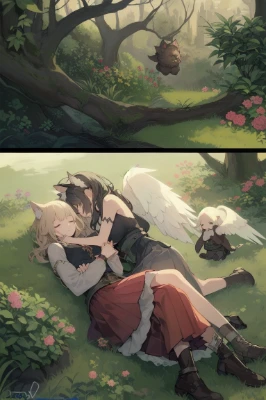 masterpiece, best quality, extremely detailed, anime <lora:deluster1:1> <lora:noline:1> , hibernation, green hair, short sleeve, watercolor, colorful, fantasy, plant, star, night sky, night view, mountain, camping, sleeping bag, sleeping, bonfire, tent, girl, fourteen years old, dainty,