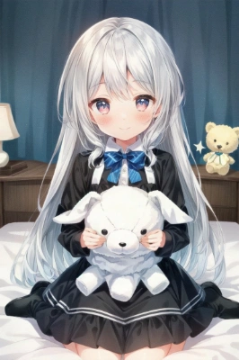 perfect anatomy, masterpiece, best quality, extremely detailed, (beautiful skin:1.1), beautiful eyes, perfect face, a pure girl, very cute face, idol, (platinum brown hair:1.1), long hair, girly negligee, (all fours on the viewer:1.5), (shyly smile:1.3), (blush:1.3), (close to viewer:1.4), in the bedroom, (face focus:1.1), ceiling, at morning, strong light come in, cinematic angle,,