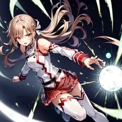 (masterpiece:1.2), (hyper extreme detailed:1.2), (illustration), best quality, high resolution, highres, (solo, 1girl:1.2), 18 years old, (asuna \(sao\):1.3), (dutch angle), [from below], floating hair, serious, glaring, (casting magic, casting spell), incoming attack, (red glowing magic circle on the sky, that likes red neon light:1.3), (standing in the broken intricate ruins), (brown eyes:1.3), beautiful detailed eyes, glow eyes, extremely detailed face, (light brown hair), long hair, french braid, (parted bangs), shiny hair, beautiful detailed hair, medium breasts, shiny skin, (red pleated skirt, red skirt:1.5), belt, (white sleeveless dress), (white detatched long sleeves:1.2), (bare shoulder:1.2), (white thighhighs), (white boots), (knights of blood uniform \(sao\):1.3), cinematic lighting, cinematic shadow, detailed light, overexpose, cinematic postprocessing, cinematic scene, cinematic composition, strong rim light, detailed rim light, ambient occlusion, ray tracing, chromatic aberration, specular reflection, HDR, drop shadow, core shadow, beautiful detailed glow, <lora:lightAndShadow_v10:0.1>,