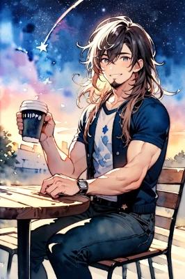(solo,hyper detailed,watercolor:1.4), shota, pretty, lovely, cute, kawaii, illustration, pixiv, anime, manga, comic, game, ((Hatsune Miku)), turquoise hair, big eyes, sparkling eyes, turquoise eyes, round eyes, tareme, dropping eyes, slender, flat chest, toddler, infant, child.((starry_sky, coffee_cup, outdoor_cafe, happy_smile, star_pattern_dress)).,