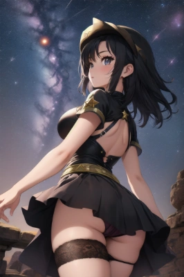 masterpiece,best quality,ultra detailed beautiful face and eyes,((((2girls)))),((bishoujo)),((((mecha_musume)))),(((holding_hands))),(((((falling down from space to earth))))),((((head down)))),(((facing_away))),((night)),((((shooting star)))),((space)),((earth)),(wide_shot),