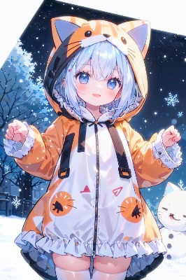 1枚目はi2iで仕上げたもの 2枚目はt2iで出力したオリジナルのもの プロンプトは2枚目のものです ポイント: 胸元が崩れていたのを整えた 左のテントに焚き火が入っていたのを削除 足元に猫を配置