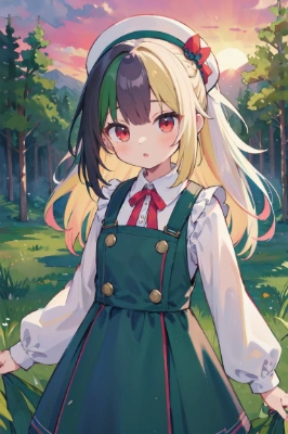 masterpiece, best quality, extremely detailed, anime, girl, skirt <lora:asb-CH1:0.7> <lora:hyperdetailer_v060:1> , pinafore dress, a pretty woman, longhair, ponytail, long sleeve, black hair, silver hair, blonde hair, red hair, yellow eyes, green eyes, purple eyes, older sister, ikemen, horror, colorful, ruins, snow,