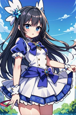 masterpiece, best quality, extremely detailed, anime, girl, skirt, magical girl,((masterpiece, best quality)), magical girl, colorful costume, sparkling wand, transformation sequence, whimsical companions, mystical powers, cute but fierce, action pose, fantasy backdrop ,