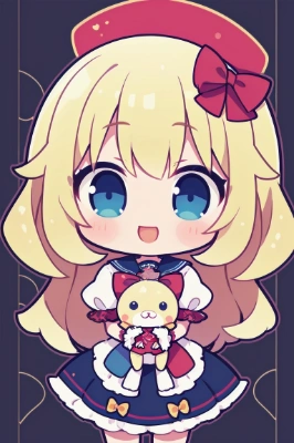 (hair bow,red bow:1.3),A beautifully detailed image of a young girl in a Japanese room, crafting a stuffed toy with dedication, featuring blonde short hair with a red ribbon, striking blue eyes, dressed in a comfortable long-sleeved outfit, the room exudes warmth and creativity with crafting tools neatly arranged, capturing her serious yet content expression, (high quality:1.25), (ultra-detailed:1.1), (vivid colors:1.05), (inspiring:1.1)