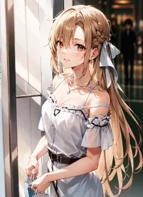 (masterpiece:1.2), (hyper extreme detailed:1.2), (illustration), best quality, high resolution, highres, (solo, 1girl:1.2), 18 years old, (asuna \(sao\):1.3), indoor, midnight, (nightclub, bar counter), table, drinker, [seductive smile] , beautiful detailed background, (brown eyes:1.3), beautiful detailed eyes, glow eyes, extremely detailed face, (light brown hair), long hair, french braid, (parted bangs), shiny hair, beautiful detailed hair, medium breasts, shiny skin, (red pleated skirt, red skirt:1.5), teppeki skirt, belt, (white sleeveless dress), (white detatched long sleeves:1.2), (bare shoulder:1.2), (white thighhighs), (white boots), (knights of blood uniform \(sao\):1.3), cinematic lighting, cinematic shadow, detailed light, overexpose, cinematic postprocessing, cinematic scene, cinematic composition, strong rim light, detailed rim light, ambient occlusion, ray tracing, chromatic aberration, specular reflection, HDR, drop shadow, core shadow, beautiful detailed glow,