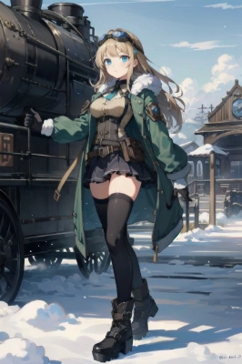 masterpiece, best quality, extremely detailed, anime, 1girl, solo, 18yo, medium breasts, contrapposto, (holding smartphone:1.2),BREAK,black shirt, (black down jacket:1.2), purple glove, beige mini skirt, BREAK,beautiful detailed face and eyes, expressionless, brown hair, long hair, black eyes, BREAK,city, winter, snow,