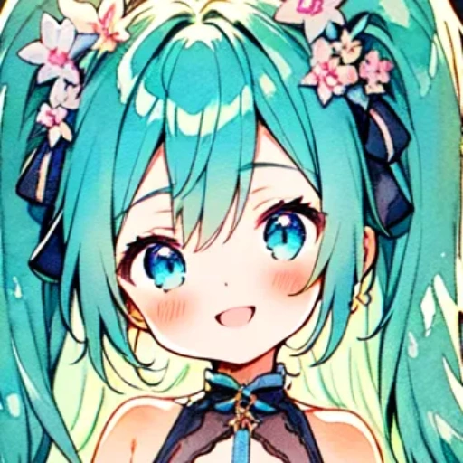 (solo,hyper detailed,watercolor:1.4), shota, pretty, lovely, cute, kawaii, illustration, pixiv, anime, manga, comic, game, ((Hatsune Miku)), turquoise hair, big eyes, sparkling eyes, turquoise eyes, round eyes, tareme, dropping eyes, slender, flat chest, toddler, infant, child.((down_jacket, snow, smiling, winter_outfit, cityscape, snowball, standing_pose)).,