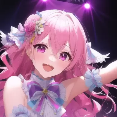 masterpiece, best quality, night,shy,ribbon,🐑,pillow,white blue,{baby,chibi 1girl,solo,eyelashes,up angle, medium wavy pink gradient hair, bangs, hair between eyes, shiny hair, pink eyes,meiden,too many frills},{{{round pose}}}},ribbon,frill, too many frills,flower,l{illustration,illustration,illustration,illustration,illustration,illustration},��