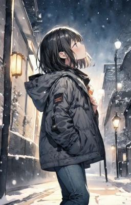 masterpiece, best quality, extremely detailed, anime, girl, 18yo, <lora:flat2:-1> <lora:saturation:-0.45> , girl, bobcut, black hair, watercolor, down jacket, jeans, , groves, standing at the harbor ,worrying, sadness, solo, winter, side shot, watching the sea, wide view ,