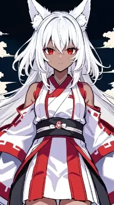 (masterpiece:1.2), (best quality:1.2), (novel illustration:1.1), (solo:1.2), brave female, (muscular female:0.5), (dark-skinned:1.3) female, (simple Japanese miko clothes:1.2), dress, frills, fox ears, (white hair), sharp blue eyes, small chest BREAK extremely detailed, wind blow, (ice ,mountains:1.3), vacuum space, desert,