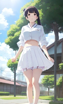 anime,moe,transparent summer blouse uniform,midriff, navel, Mayu Hanasaki style girl,transparent white mini skirt,underpants,shyness,I'm wet with sweat and my underwear is visible through my blouse