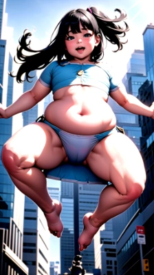 jukujo (business jacket:1.1) arms up briefs spread legs feet open thigh jumping between buildings sky clouds from below natural lighting (detailed face:1.1) detailed thigh masterpiece best quality hdr uhd professional raw highly detailed 32K 8K <lora:jukujo_yuzu_v4:1>