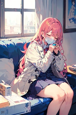 masterpiece, best quality, extremely detailed, anime, pink hair, longhair, girl, long sleeve, blue eyes, winter, blushing, skirt, classroom, school, schoolgirl, lying down, blushing, caught a cold, have a high fever, she is in pain,<lora:hohoaka:1> <lora:grgr-eye1:0.5>