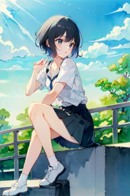 (16yo:1.3), (long straight hair:1.2),(hair black),red eyes, cool, small breasts,