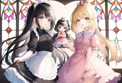 masterpiece, best quality, cute face, huge smile, petite, {princess(Princess wear pink dress, not maids' uniform) and maid(Maid has black hair and wears a black and white maid's uniform)}, {{Blonde princess}}, dark-hair maid, {{{Blonde with pink dress}}}, dark-hair with maid uniform, loli, little girl, little, child, 10 years old, medium breasts, {{{2girls}}}, {{{yuri}}}, locker room