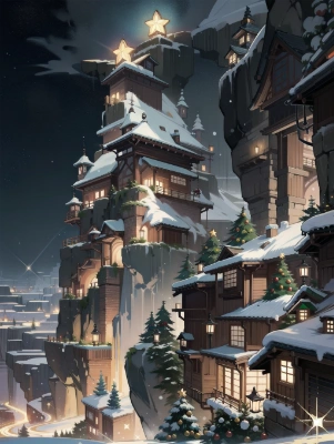 fire,flame,blaze, snow,Powder Snow,Snowflakes, bubbles,large bubbles,small bubbles, snow,Powder Snow,Snowflakes, (illumination, decorative lighting, night:1.5)