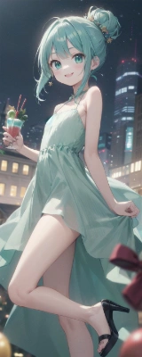 masterpiece, best quality, highres, 1otoko no ko, (navy blue blazer), yellow cardigan, (brown pleated skirt), loafers, school bag, scarf, かわいい, flat chest, (aqua hair:1.2), aqua eyes, half updo, displeased, train station, christmas, night, looking back<lora:flat2:0> <lora:hairdetailer:0.5>,
