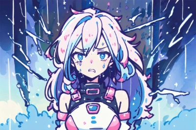 (((Masterpiece, High Quality, 8k, Best Quality, high resolution, , 1 girl))), Fuurai-ki, thunder, generator, storm, suspicion, weeping, bravado, rain-soaked, electricity sparks, dark clouds, intense gaze, furrowed brows, clenched fists, emotional outburst, tattered clothes, wind-blown hair, flash of lightning, tear-streaked face, determined stare, struggling against wind, desperate effort, isolated figure, shivering in cold, shadows playing on face, stormy background, broken equipment, heavy raindrops, sorrowful posture, gritted teeth, survival instinct, flashes of fear, moment of despair, best quality, extremely detailed, <lora:concentratedlines_v100:0.85> ,<lora:darkness_v100:-0.3> ,