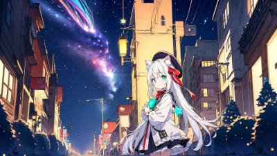(master piece),(ultra best quality),(spectacle hdr wdr iso cgi effect),(vivid silk screen),(magnificent Sophistication Photoshop quality Specialization:1.2),(young little lady face girl:1.2),(little lady white girl:1.1),(silver side up long hair),(vivid emerald eyes),(ruddy Milky skin:1.2),(ribbon down jacket:1.2)(frill skirt:1.2),(bitter smile),(beret hat),(light mixture dark mix background),(vivid mysterious landscape objects),(fantasia taste),(Brilliant vivid colors cgi effect),(vivid warm shades screen tone:1.3),(Fluffy fade modern illustration sketch anime screen tone:1.3),(foamy dream:1.2),,(fluid change),(truck deep shot),,(indoor:1.2),(blessing birthday:1.4),(Cozy warm),(grand venue venue),(Heartful:),(Christmas tree),(Lively),(shining),(From fluorescence),(neon illumination),(Spectacular view),(sunrise),<lora:add_detail:0.7> <lora:sharpen-soften:0.2>