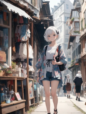 absurdres, highres, (extremely detailed fine touch:1.3), ///, girl, light blonde (super very short hair:1.3) (parted bangs:1.3), mixed media, diverse materials, unexpected combinations, creative exploration, vibrant composition, (zentangle:1.3), (flower:1.3)