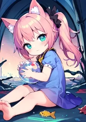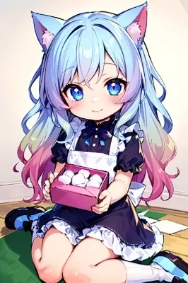 (masterpiece), (best quality), (ultra-detailed:1.2), (illustration), 1girl, solo, hugging, (strawberry:1.2), (strawberry_cushion:1.2), (big strawberry cushion:1.2), (smile), (pink), (cute), (happy), hair_ribbon, frills, ribbon_dress, thighhighs (short girl:1.3) (loli:1.3) (chibi:1.3) (toddlercon:1.2) (toddler body:1.2) (loli face:1.3) (4yo:1.2), (long wavy hair:1.4), (pink head hair:1.2), skyblue tip hair, , (pastel color hair:1.3), (colorful hair:1.3), (gradient hair:1.6), (((tareme))), ((pastel color)), (cat ears:1.1) (nekomimi:1.1), dress, (dim light night view:1.2)