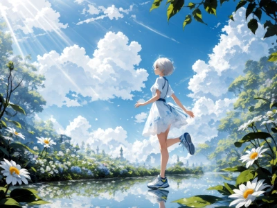(kawaii background:1.3), (extremely detailed fine touch:1.3), (hard light, studio light, light rays, dappled light, reflection, shadows, ray tracing:1.0), ///, girl, long hair, light blonde, Princess, full body, sky, cloud, flower, glass shoes, mandala, stained glass, mosaic, snowflake, crystal, gemstone, rainbow, bubbles, (RGB effect:1.3), (reflect:1.3), light, (too many small spherical lights flying around in the air:1.4)