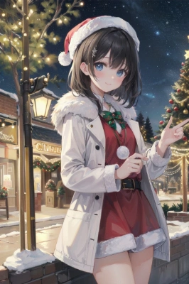 masterpiece, best quality, extremely detailed, , (cool girl, little smile,clear, coat:1.3), (fain touch outline, waterpainting:1.2), (illuminations, night sky, city town, kirakira:1.3), (absurdres,hires,ultra detailed,best quality,hyper quality,top quality,masterpiece,HD,16K,sophisticated detail,perfect detail,tangle:1.3), beautiful detail hands,perfect detail hands, photo realistic, masterpiece, best quality, extremely detailed,, <lora:hairdetailer:0.55> <lora:eyecolle_euphorbia_v100:1> ,, (Christmas lights,illuminations:1.3),,