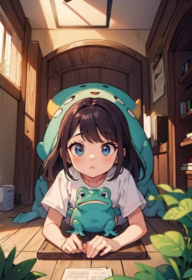 登場人物: 葵(あおい):好奇心旺盛な双子の妹。何事も一生懸命だが、その熱意が時には周囲を巻き込むトラブルを生む。 紗耶(さや):葵の双子の姉。冷静で計算高く、妹のピンチを救う頭脳派。だが、実はいたずら好きの一面も。 シナリオ: 葵はある日、謎のゴールデンボックスを手に入れた。ボックスは特別な魔法がかけられていて、開けるたびに不思議な現象が起こるという。 「紗耶、これ見て!開けるたびに違うものが出てくる不思議なボックスなの!」葵はワクワクしながら紗耶に見せた。 「へえ、楽しそうね。でも、変なものが出てきたらどうするの?」紗耶は好奇心を隠しきれずにいた。 二人は学校でゴールデンボックスを開けることにした。最初はただのキラキラした石が出てきたが、次第に事態はエスカレート。 「今度は何が出るかな?」葵が期待を込めてボックスを開けると、教室に黄金の紙吹雪が降り始めた。 「わー、キレイ!でも、これ、後片付け大変そう…」紗耶は既に後のことを考えていた。 ボックスの魔法は次に、教室に黄金色の蝶を飛ばした。生徒たちはその美しさに感動したが、教師は混乱し… 「誰がこんないたずらをしたんだ!?」教師が怒鳴りながら入ってきた。 「あっ、これはえっと…魔法の…芸術作品?」葵は苦しい言い訳をする。 最後に、ゴールデンボックスは校庭に巨大な黄金の滑り台を出現させた。生徒たちは大喜びで滑り台を楽しみ、その日は学校史に残る「黄金の日」となった。 「葵、今度はちゃんと計画を立ててからボックスを開けようね。」紗耶が笑いながら提案した。 「うん!でも、今日は最高に楽しかったね!」葵は満足げに答えた。 二人の黄金ギャグコメディはこれからも続く。ボックスは閉じられ、次の冒険を待っている。 (イラストを参考にシナリオをChatGPTが生成しています)