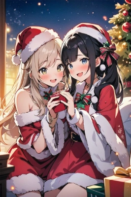 Master piece,Best quality,beautiful detailed ,ultra detailed,extremely detailed,1girl, light brown hair,short hair,wavy perm hair,(center parted bangs,forehead), santa clothes, BREAK , christmas, christmas cake, cake on table , party , (smile), happiness,,,,,