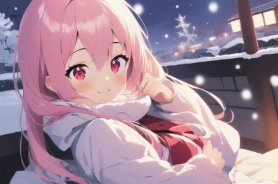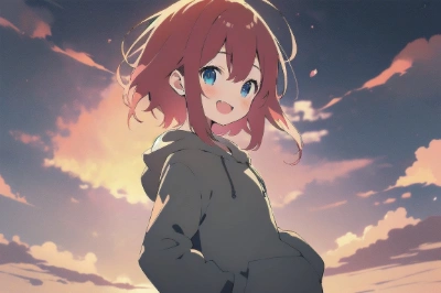 masterpiece, best quality, extremely detailed, anime, girl, skirt , shorthair, white hair, red eyes, cherry blossom, smiling, 17yo, <lora:flatBG:1> <lora:noline:1> fang, , shorthair, white hair, red eyes, cherry blossom, smiling, zip up, cowboy shot, looking back, hands in pocket, ,