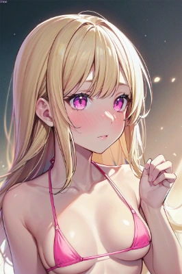 masterpiece, best quality, extremely detailed, beautiful detailed glow, ultra high res, beautiful, best aesthetic, 8k, anime, 1 girl , bobcut, brown hair, purple eyes, (junior high school), ((medium breasts)), wariza, cleavage, nose blush, micro bikini,