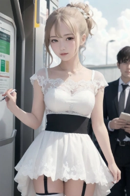 masterpiece, best quality, extremely detailed, anime, girl, skirt <lora:flat2:0.4> <lora:hairdetailer:-0.55> , subway, girl, ponytail, puff sleeve, garter belt, wink, blonde hair, wedding dress, watercolor,