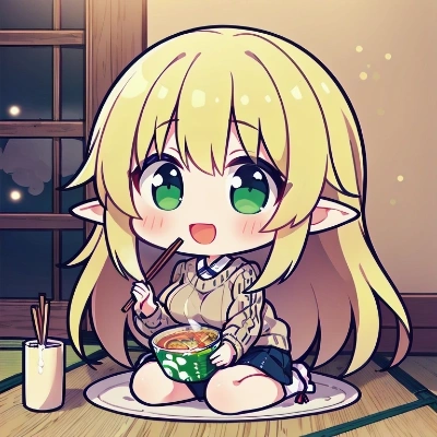 chibi character,New Year@!@s Eve,eat Japanese style ramen, Steam from ramen,gray noodles,hold chopsticks in hand,sit, kotatsu,beige knit sweater,solo,1 woman,best quality, (((extremely masterpiece))),best quality, extremely detailed,a pretty woman, longhair,blonde hair, green eyes,elf,present day, beautiful breasts, ribbon,:d,great joy,night, <lora:flat2:0> <lora:hairdetailer:0> living room,from the side,