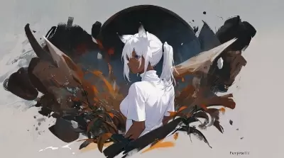 (masterpiece:1.2), (best quality:1.2), (novel illustration:1.1), (solo:1.2), brave female, (muscular female:0.4), (dark skinned:1.3) female, ((simple:1.2) white turtleneck t-shirt :1.2), white dress, (fox ears:1.2), (white hair), sharp red eyes, small chest, ponytail hair BREAK extremely detailed, wind blow, Cthulhu on moon, (a intricate cow skull:1.2), viewing from back,