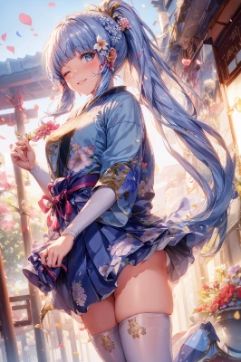 hires, cinematic angle,beautiful face,finely detail, masterpiece, best quality, ultra-detailed,Photorealistic,8k,lens flare,intense shadows,Studio,dreamy washes,bokeh photography,dreamy ambiance,beautiful detailed glow,colorful refraction,golden hour lighting,backlighting,colorful lighting,1girl, solo,full body,(new year card;1.2),<lora:midjourney_20230624181825:0.35>,<lora:flat2:-0.5><lora:Nahida3:0.7>,nahida \(genshin impact\),(cross-shaped pupils:1.4),(silver hair,light green eyes,side ponytail,pointy ears,short hair:1.2),(baby,5 years old:1.1),looking at viewer,reaching,one eye closed,smile,(floral frills hakama,floral miniskirt,thighhighs,kanzashi,:1.4),(happy new year,:1.3),(land scape of flower,land scape of petals,night,beautiful night sky,beautif,:1.2),winter,shrine,east asian architecture,blue sky,wind,