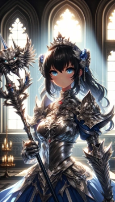 A 17-year-old Western-style female summoner in anime style, summoning Bahamut, who is breathing out intense flames. She is wearing an elaborate robe with mystical symbols and holding a staff. Her hair is styled in a dynamic way, illustrating the intense heat and energy around her. She is in a commanding pose with her hand outstretched towards Bahamut, who is partially visible in the background, a massive dragon figure engulfed in flames and heat, illustrating its fiery breath and immense power,<lora:deluster1:1> <lora:hairdetailer:1> <lora:saturation:-0.15> <lora:bigeye:-0.65> <lora:eyecolle_kiwi_v100:1>,,