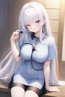 white miko girl, sunny, sunlight, morning, empty eyes, smile, sideways glance, seen from leftside, stripped big bust, stripped big hip, light gray short hair, child face, sweep with a broom, shinto shrine, people, masterpiece <lora:make25d_type1_v100:1> <lora:sensualface_type1:1> ,,,,