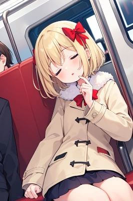 3girls,loli,blond hair,short hair,hair bow,red bow,blue eyes,outdoors,(pounding mochi:1.29),(mochitsuki:1.2),long sleeves, coat,smile,masterpiece, <lora:flat2:-0.6>