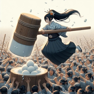 このページは現在開発中です。リニューアル版はすべて開発中のため不具合が起きる可能性があります!一部機能を新しくリリースし直しています!基本的には旧版をそのままご利用ください!旧バージョンへ不具合報告1 / 2Previous slideNext slideいいね40推薦力加減失敗2024年01月03日 11時17分使用モデル名:DALL-E3対象年齢:全年齢スタイル:イラストデイリー入賞 89 位参加お題:餅つき#餅つき#着物#ポニーテール#破壊日本独特+道具を使うのはやっぱり難しい 2枚目が比較的うまく出たけど、なんか面白みに欠けるのでこれを1枚目にPrompts剣道、白い粘着物が付いた長いハンマーを振り下ろす着物の女の子、木製の臼に一塊の餅、躍動感のあるポニーテール、かっこいい、長い長いハンマーCopy生成情報あーくす