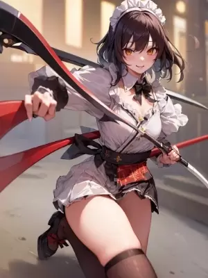 ((masterpiece:1.4, best quality)), ((masterpiece, best quality)),1woman,secretary,glasses,{{{evil grin}}},long hair,absurdres,(((shibuya city))),(((She has a shinigami scythe))),{{{{death scythe}}}},(((fighting stance))),