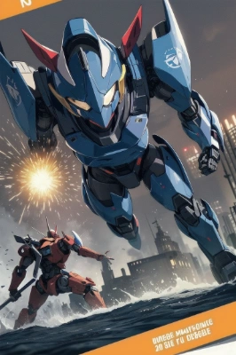 masterpiece, best quality, extremely detailed, anime, zoom up, face, mecha musumeDynamic robot anime, masterpiece, high definition, high quality, 8k, 1 robot, giant humanoid with a total length of 300 meters, ruby armor, fire magic, sticking out a glowing long sword, full body, medieval European castle, dynamic colors,