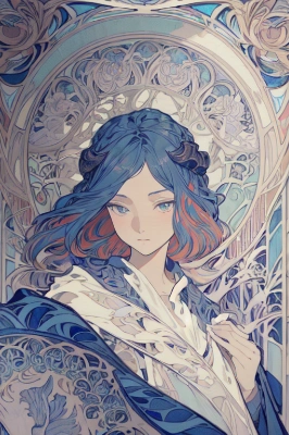 absurdres, highres, ultra detailed, (art nouveau:1.6), (Print multicolor printing:1.7), increase the saturation, 1girl, many tatoos, cute, prertty, demon horns, demon wings, coat, scrapbooking, memory keeping, layered designs, decorative elements, personal mementos, creative storytelling, artistic expression, stone sculpture, carved figures, timeless elegance, skilled craftsmanship, natural materials, enduring beauty, historic art form, by guraAIart,<lora:EMS-71878-EMS:0.200000>