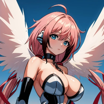 nymph, (blue eyes, blue hair:1.4), long hair, long twintails, robot ears, twintails, two side up, wings,