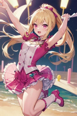 masterpiece, best quality, extremely detailed, anime , blue eyes, silver hair, Double buns, school uniform, sailor suit,hip, round face, arms behind back, smile, <lora:flat2:0.1> <lora:lightline:0.6> ,