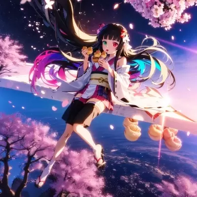 (neopop art:1.8),(anime screencap:1.3),(cel shading:1.4),(ukiyoe (color print of everyday life in the Edo period) (colour):1.3),1girl,solo,(straight permanent wave,absurdly long hair,black hair),white skin,heterochromia,upper_teeth,Large Ribbon,kimono,detached_sleeves,sash,plaid_skirt,flat chest,(drink wine:1.4),(Japanese Traditional Performing Arts:1.3),(Japanese Background:1.3),(absurdres,hyper quality,highly detailed:1.5),(colorful,vivid colors:1.3)