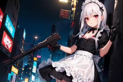 very cute female child,10 yo,white hair,bangs,medium hair,blue eyes,flat chest,