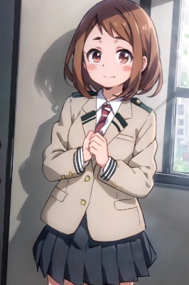 (masterpiece, best quality:1.4),1girl,solo,smile,looking at viewer,chso,lycoris uniform,red belt,shirt,white shirt,collared shirt,ribbon,hair ribbon,red ribbon,neck ribbon,blue ribbon,school uniform,belt,thighs,two-tone dress,pleated dress,red dress,grey dress,<lora:chisato-v6-000008:1>,